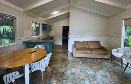 Our Beachside Classic Cabins are situated on the beach side of the park and offer the spaciousness of open-plan living. These are a retro 50’s style accommodation; cute and comfortable – and in November 2021 we added ensuite bathrooms, making these the perfect quick weekend getaway