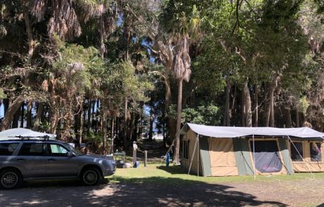 Setup adjacent to the lake with glimpses of the sunset over the lake through the palm forest, or walk a mere 10m down to the bank and take in the view from there. The precinct is shaded by palms and offers a nature based play area for kids, basic camp kitchen and full amenities at the Lodge block. Sites are on a gravel base with camp mats provided. Some Lakeside North sites have a concrete slab.